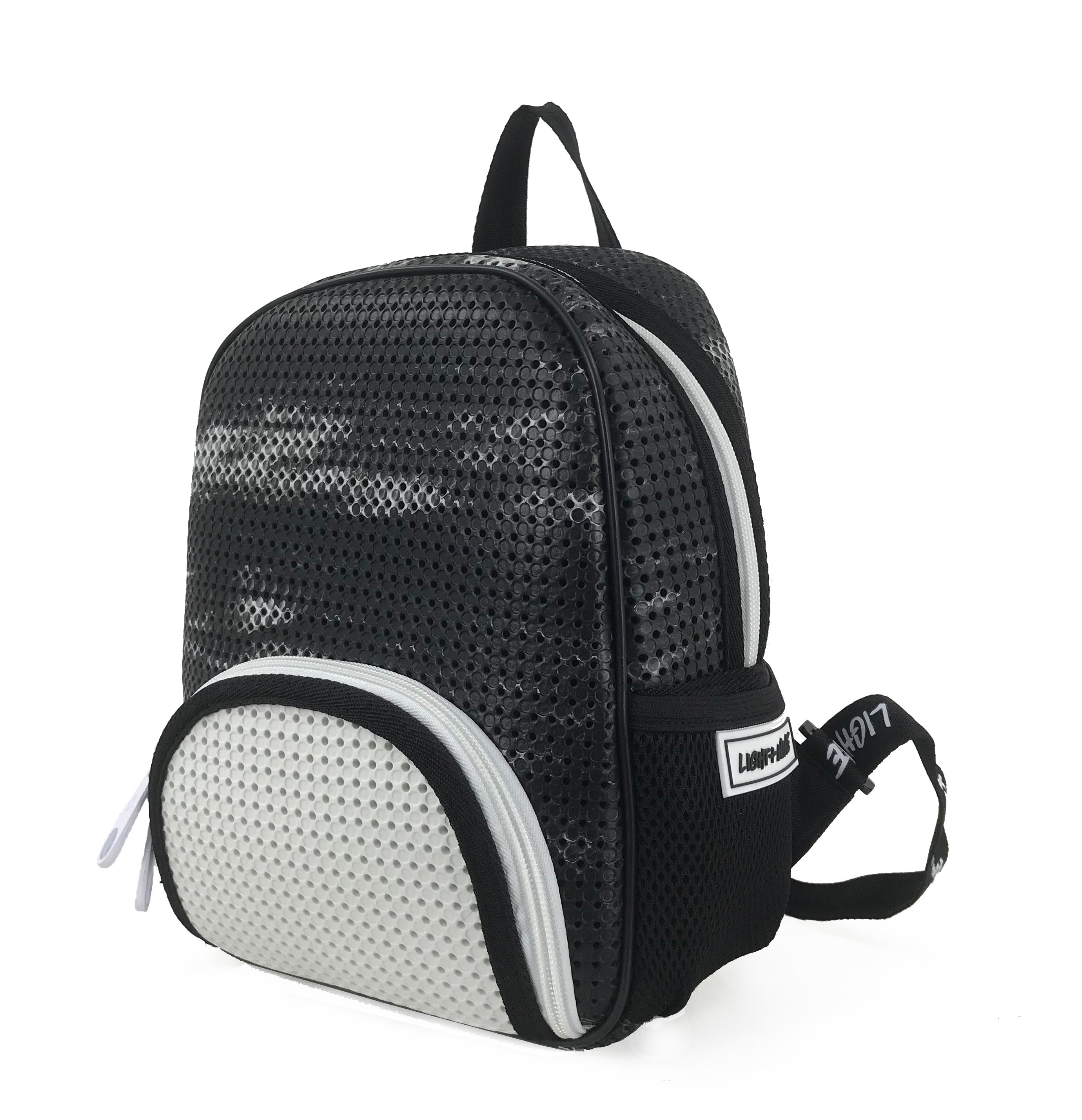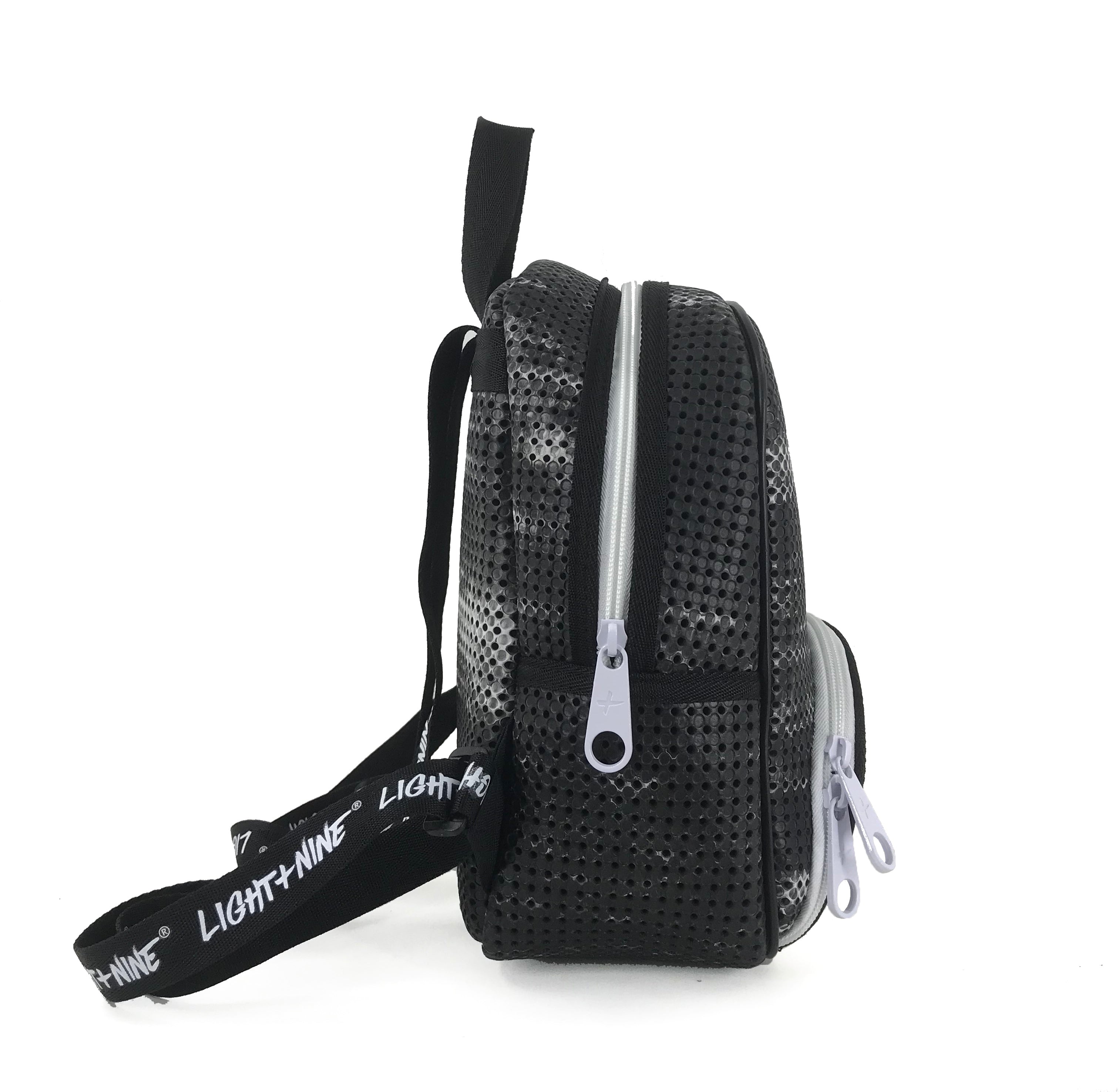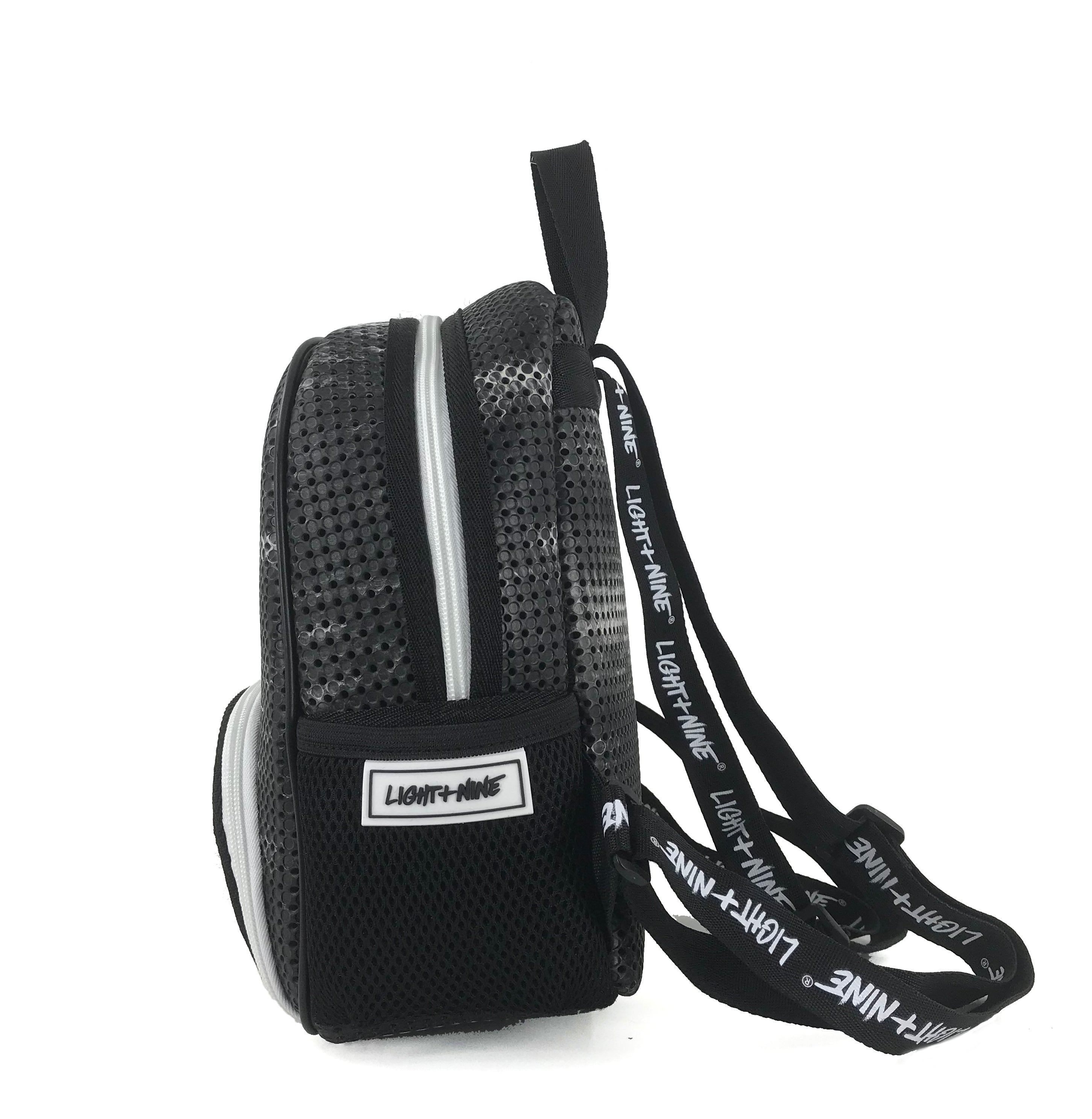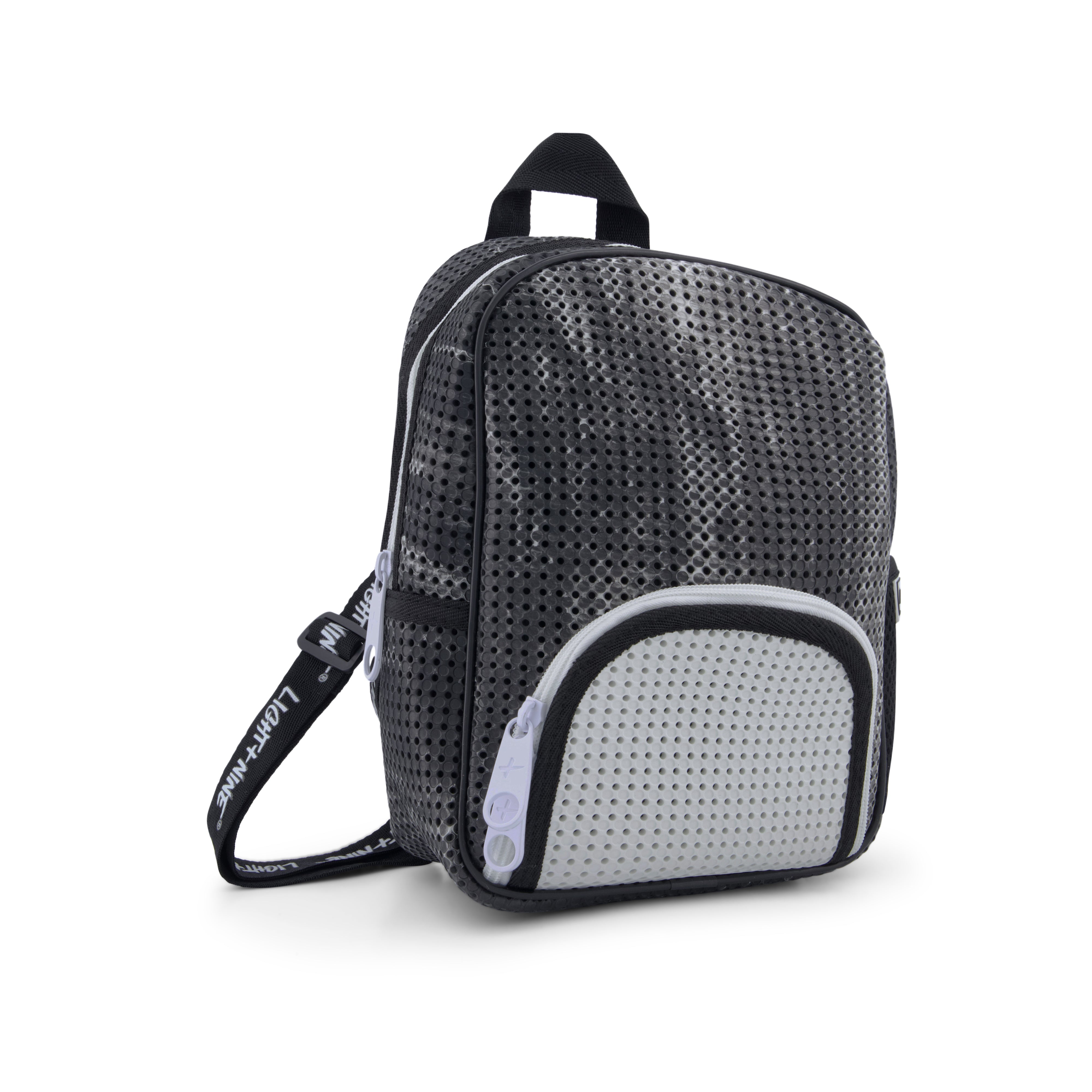 All Light+Nine products are made with perforated material specifically designed to be embellished with DIY nimix. Nimix are sold in a variety of fun characters and letterings to customize your bag by yourself. Shop Nimix →